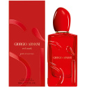 Ikoniczna butelka Si jest odtworzona jako żywy wyraz pasji dzięki swojej żywej, przezroczystej czerwonej barwie. Dopasowana nakrętka dodaje pięknego akcentu, który odzwierciedla intensywność zapachu. Oznakowana logo Si butelka staje się cennym przedmiotem.