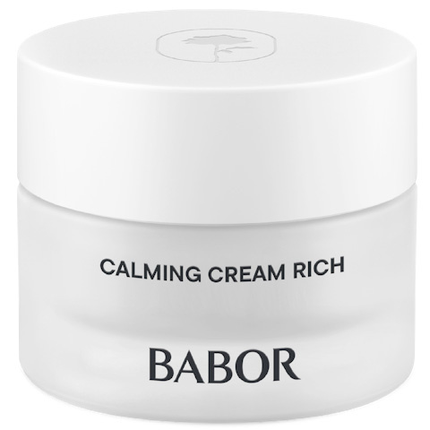 Babor Calming Cream to łagodzący krem do twarzy z ekstraktem z owczego mleka, który hamuje procesy powodujące podrażnienia, sprawia, że skóra jest mniej reaktywna i ma natychmiastowy efekt uspokajający. Podrażnienia skóry i uczucie ściągnięcia zostają zredukowane, a zaczerwienienia związane ze stresem zmniejszają się. Alantoina i pantenol wspomagają regenerację skóry, dzięki czemu skóra szybciej wraca do zdrowia. Efektem jest spokojniejsza skóra, która jest bardziej odporna na stres. Nie zawiera substancji zapachowych i barwników.