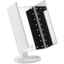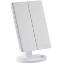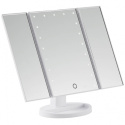 To składane lusterko składa się z trzech lusterek, które zapewniają doskonały panoramiczny przegląd twarzy. 21 jasnych, miękkich i regulowanych świateł LED zapewnia doskonałe odzwierciedlenie kolorów i optymalne światło do nakładania makijażu lub pracy nad brwiami. Jasność można dostosować do własnych upodobań w oparciu o światło wymagane na każdą okazję za pomocą przycisku dotykowego na ekranie lustra. Naciśnij przycisk dotykowy, aby włączyć/wyłączyć światło i przytrzymaj przycisk przez co najmniej dwie sekundy, aby dostosować światło. Lustro można łatwo regulować, aby zapewnić przegląd pod najlepszym możliwym kątem. Lustro jest wyposażone w trzy składane lusterka, które zapewniają różne kąty i trójwymiarowe wrażenia, a regulowana podstawa lustra umożliwia umieszczenie lustra na płaskich powierzchniach, dzięki czemu można łatwo pracować obiema rękami. Światła są zasilane za pomocą kabla USB (w zestawie) lub 4 baterii AAA (brak w zestawie). Baterie nie będą zużywane, gdy lustro jest podłączone przez USB.