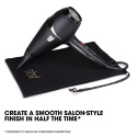 Uzyskaj piekne wlosy w o polowe krótszym czasie* dzieki profesjonalnej suszarce do wlosów ghd air®. Profesjonalny silnik o mocy 2100 W** i opatentowany wyjmowany filtr powietrza zapewniaja wysoki przeplyw powietrza w celu szybkiego suszenia, a zaawansowana technologia jonowa redukuje puszenie sie wlosów i odstawanie kosmyków, zapewniajac gladkie wykonczenie w salonie fryzjerskim w o polowe krótszym czasie*. Zmienna regulacja mocy i temperatury umozliwia dostosowanie suszenia do rodzaju wlosów, a przycisk chlodnego nawiewu pomaga utrwalic fryzure. Ergonomiczna konstrukcja sprawia, ze suszarka jest wygodna zarówno dla prawo-, jak i leworecznych uzytkowników.