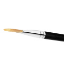 Duzy, plaski i kwadratowy pedzel z wlókna syntetycznego z delikatna i twarda koncówka do rozprowadzania i mieszania plynnych lub kremowych produktów na twarzy lub ciele.