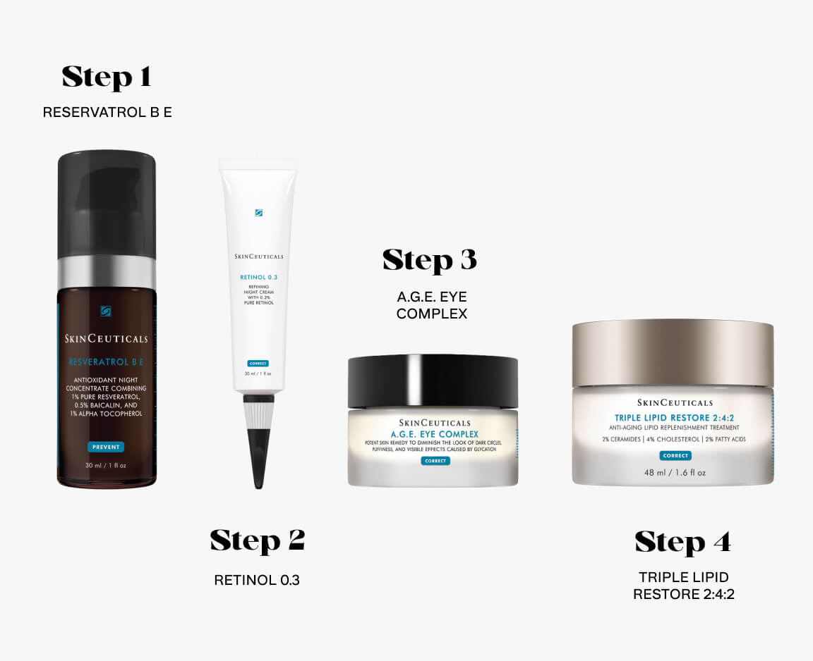 Połączyliśmy produkty z oferty SkinCeuticals w idealny zestaw umożliwiający rozpoczęcie przygody z retinolem i odpowiedni dla osób mających już doświadczenie z jego stosowaniem.