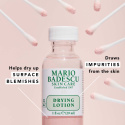Drying Lotion to najlepiej sprzedający się produkt Mario Badescu w ponad 40 krajach i skuteczny środek do leczenia i wysuszania pryszczy. Balsam w krótkim czasie skupia stan zapalny, wysusza i skraca ognisko. Preparat stosować profilaktycznie, od pierwszych objawów ogniska choroby. W najcięższych przypadkach leczenie należy powtórzyć. Działa najlepiej na powierzchowny trądzik i jest stosowany wieczorem do leczenia na noc. Balsam należy nałożyć bezpośrednio na pryszcz i otoczyć go cienką różaną powłoką.