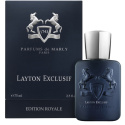 Layton Exlusif to woda toaletowa dla mężczyzn o ciepłym, orientalnym i drzewnym zapachu. Górne nuty mandarynki, bergamotki, nuty wodne i migdały. Nuty serca: żółta lilia wodna, geranium, gardenia i róża. Nuty bazy: dąb, bursztyn, kawa, wanilia, drzewo sandałowe, liść paczuli, drewno gwajakowe, drzewo agarowe i pieprz różany. Zapomnij o wszystkich zasadach i ograniczeniach. Parfums de Marly Layton Exclusif unisex Eau de Parfum jest idealny dla każdego, kto odważy się wyróżnić z tłumu.