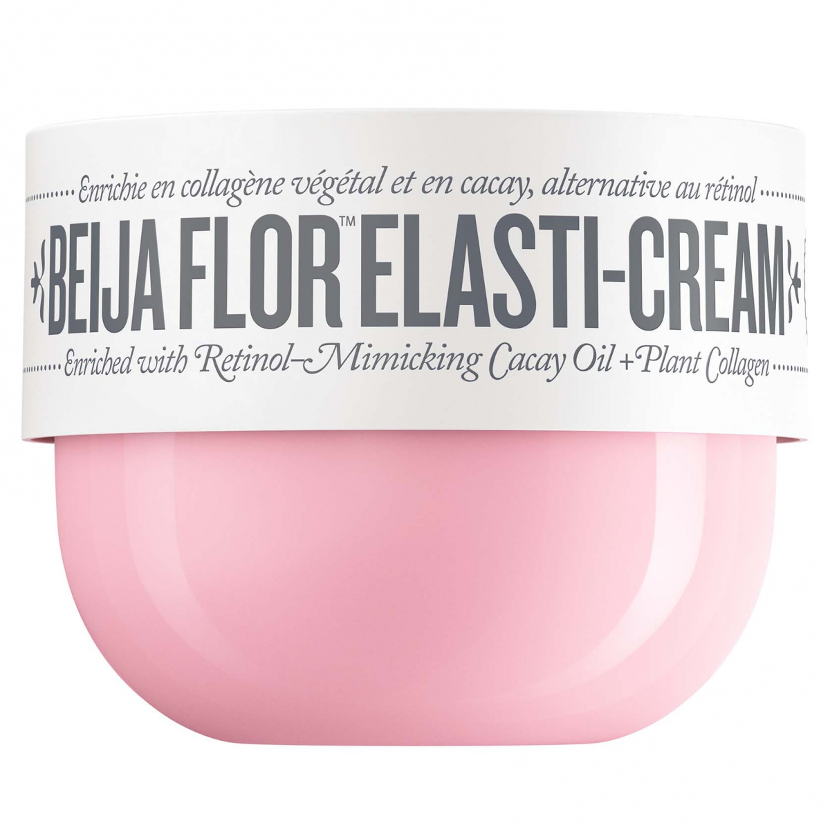 Krem do ciała poprawiający elastyczność skóry zawiera olej cacay, łagodną alternatywę dla retinolu, oraz roślinny kolagen, dzięki któremu skóra pozostaje młoda, pulchna i pełna blasku! Przepyszny zapach Cheriosa'68 zawierający nuty brazylijskiego jaśminu i różowego smoczego owocu. Owocowa, kwiatowa eksplozja!